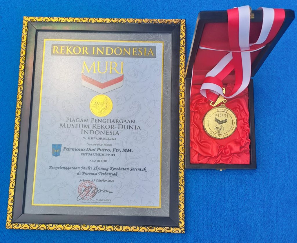 SEPUTAR,KOLAKA.ID-Sebagai upaya fisioterapis untuk penguatan dan trasformasi Kesehatan untuk seluruh negeri, Ikatan Fisioterapi Indonesia (IFI) yang merupakan organisasi profesi yang mandiri melakukan aksi skrining nasional baik Pengurus Pusat, Pengurus Daerah maupun Pengurus Cabang serentak di 34 Provinsi yang ada di Indonesia Aksi ini didaftarkan pada Rekor MURI dengan rekor “Penyelenggaraan multi skrining kesehatan serentak di Provinsi Terbanyak”.