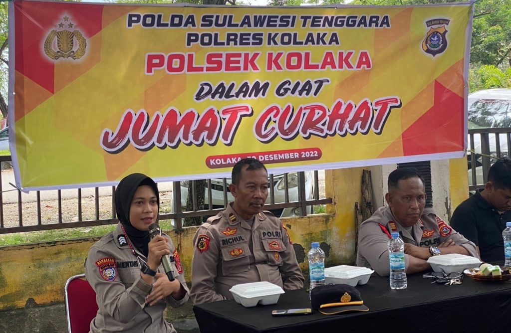 Kapolsek Kolaka mengatakan kegiatan Jumat Curhat dilaksanakan untuk menyerap informasi Kamtibmas sekaligus menjalin komunikasi dengan masyarakat mengenai pelayanan Kepolisian khususnya pelayanan Bhabinkamtibmas Polsek Kolaka. “Kami membuka ruang diskusi kepada masyarakat terkait hal-hal yang menjadi kendala masyarakat serta kinerja Kepolisian khususnya para Bhabinkamtibmas Polsek Kolaka terhadap pelayanan kepada masyarakat,” kata AKP Moh. Asyurah.