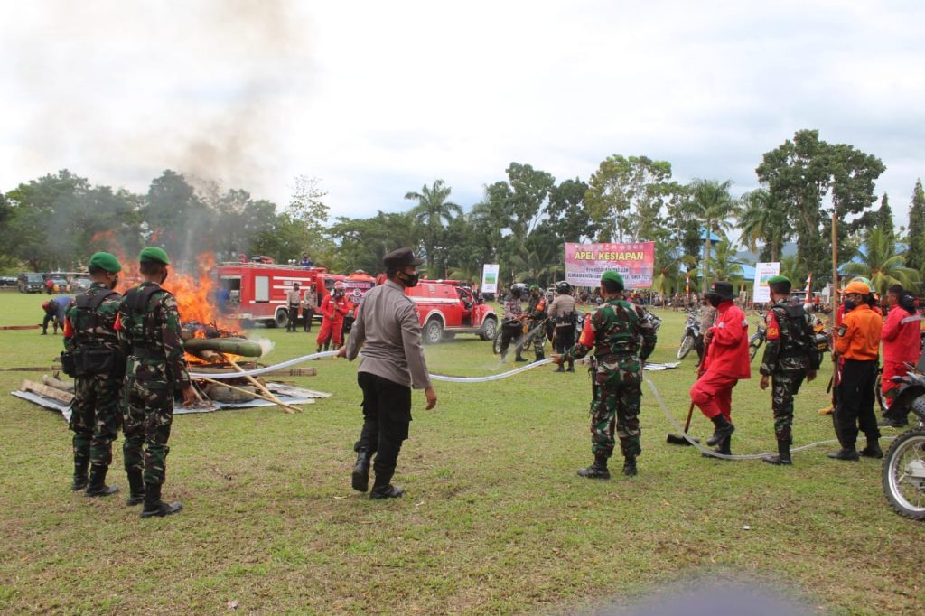 SEPUTAR,KOLAKA.ID-Pemerintah Daerah Kolaka Timur Provinsi Sulawesi Tenggara melaksanakan apel kesiapsiagaan menghadapi Kebakaran Hutan dan Lahan (Karhutlah) Minggu (10/4). Dalam kegaiatan tersebut juga dilaksanakan simulasi pemadaman api yang diikuti oleh Personil TNI Polri, serta unsur terkait, dengan melibatkan Organisasi Masyarakat.