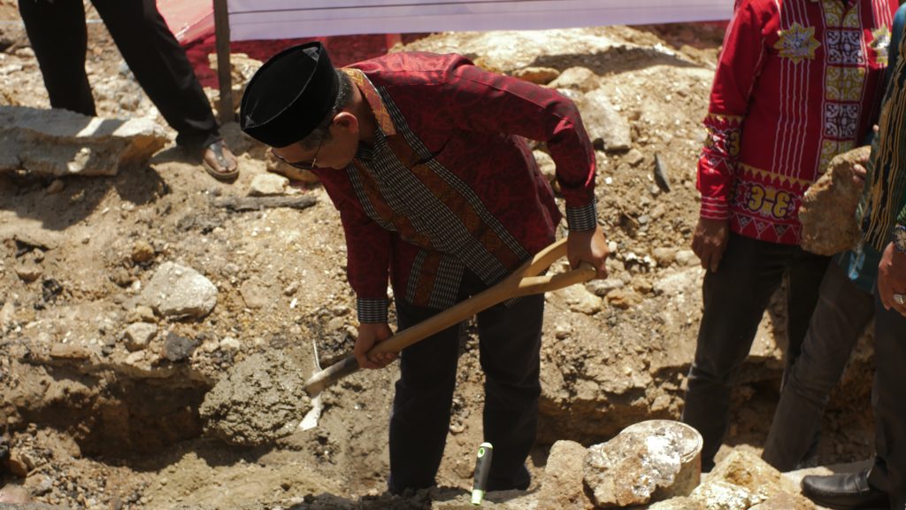 SEPUTAR,KOLAKA.ID-Bupati Kolaka, H. Ahmad Safei melakukan peletakan batu pertama pembangunan rumah korban kebakaran di Jalan Bolu Kelurahan Sea, Kecamatan Latambaga, Kamis (31/8).