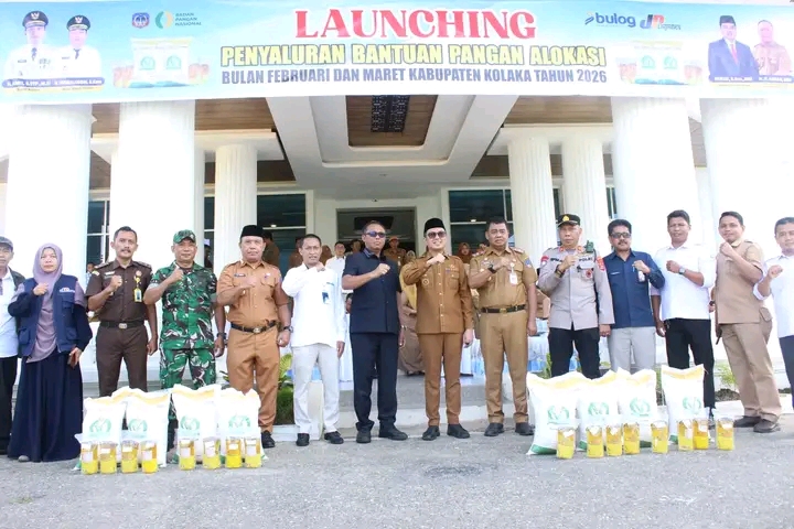 SEPUTAR,KOLAKA.ID-Kolaka,Pemerintah Kabupaten Kolaka kembali menunjukkan komitmennya dalam menjaga ketahanan pangan daerah. Bupati Kolaka, H. Amri, S.STP., M.Si, secara resmi meluncurkan penyaluran bantuan pangan cadangan pemerintah untuk alokasi Februari dan Maret 2026, Senin (06/04). Program ini menjadi bagian dari langkah strategis pemerintah dalam memastikan kebutuhan dasar masyarakat tetap terpenuhi.