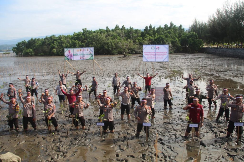 Kegiatan yang bertema “Polri lestarikan Negeri Penghijauan Sejak Dini” ini dilaksanakan bersama Bhayangkari Peduli Penghijauan Pantai dengan Penanaman Pohon Mangrove dalam rangka HKGB KE 11 Tahun 2023 dan Hut Kemerdekaan RI ke 78 tahun 2023.