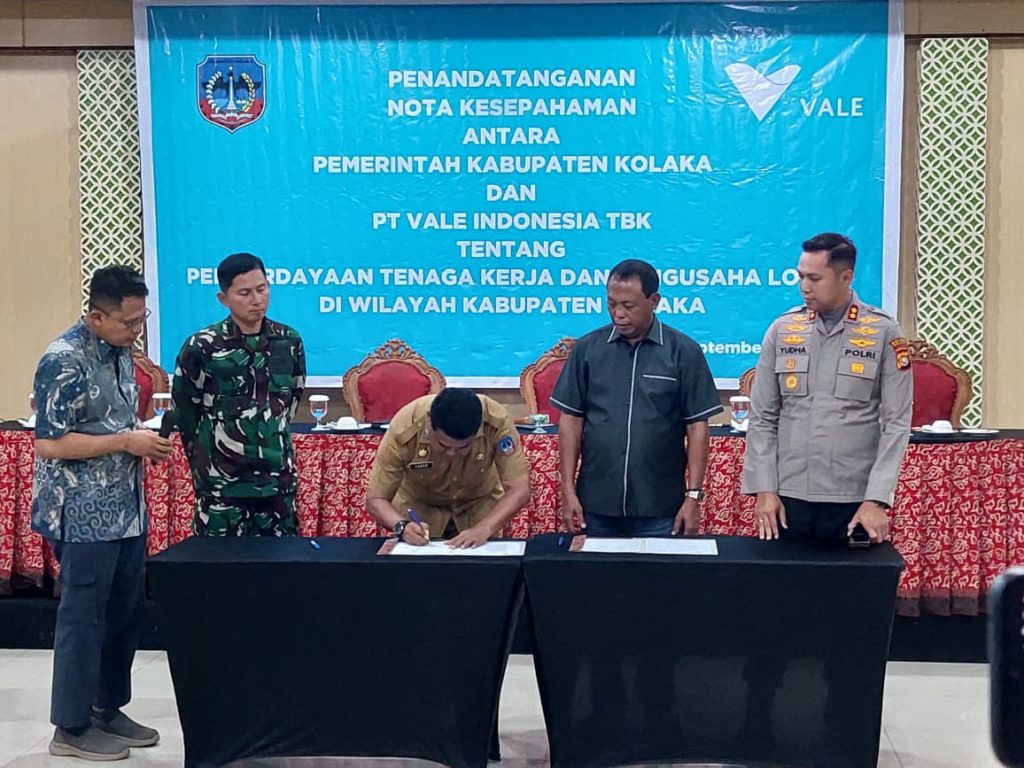 SEPUTAR,KOLAKA.ID-Kolaka,PT Vale Indonesia Tbk (PT Vale) terus menunjukkan keseriusannya dalam mendukung pembangunan berkelanjutan di Kabupaten Kolaka. Hal ini ditandai dengan penandatanganan Nota Kesepahaman (MoU) antara PT Vale dan Pemerintah Kabupaten (Pemkab) Kolaka mengenai pemberdayaan tenaga kerja serta pengusaha lokal, Selasa (16/9/2025) malam, di Hotel Sutan Raja.
