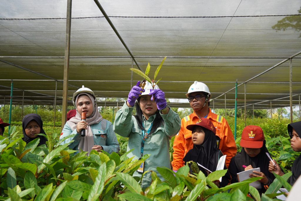 Seharian berkunjung ke area pembibitan, nama-nama flora dan fauna juga diajarkan kepada para siswa. Berbagai tanaman endemik ataupun lokal diambil oleh Perusahaan dari hutan sebelum penambangan dilakukan untuk dirawat di dalam pusat pembibitan.